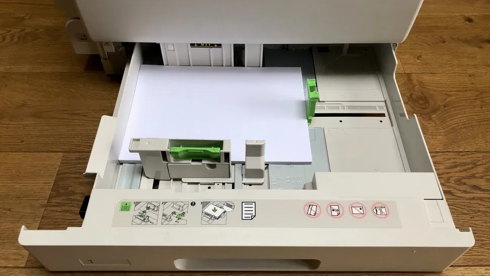 То, что выглядит как обычный принтер формата A4, оказывается самым маленьким принтером формата A3 на рынке с доступными аксессуарами, которые делают его одним из самых больших. Он вмещает 300 листов бумаги в основном лотке и 100 листов в многоцелевом лотке, но если добавить ещё три лотка, то вместимость увеличится до 2540 листов.