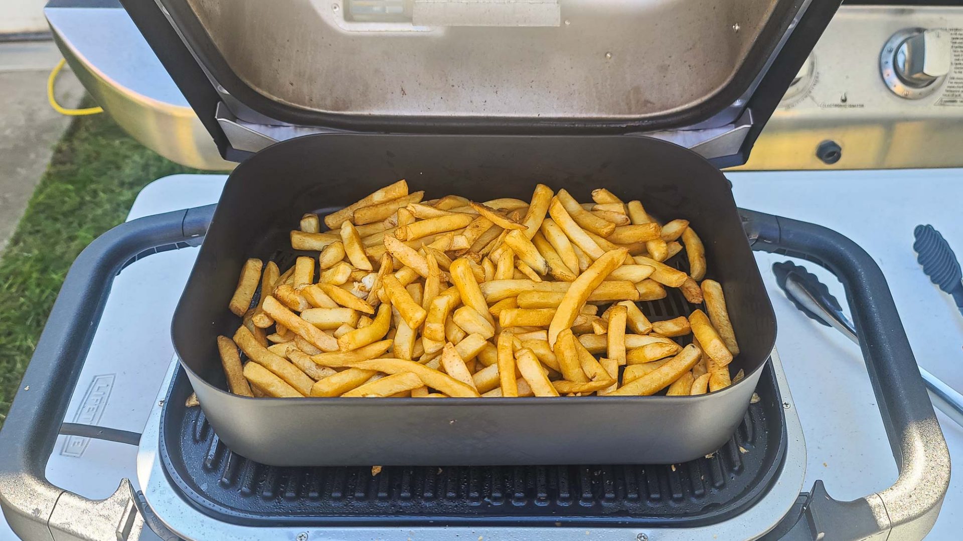 С точки зрения производительности, он идеально поджарил мясо, от сочных бургеров, жареной курицы, распадающихся на волокна ребрышек и сочного копченого лосося. Он даже хорошо справился с обжариванием салата ромэн и поджариванием гренок, если вы хотите приготовить на гриле салат «Цезарь». Кроме того, у него есть удобное место для хранения под ним, чтобы хранить все ваши аксессуары и принадлежности для гриля.