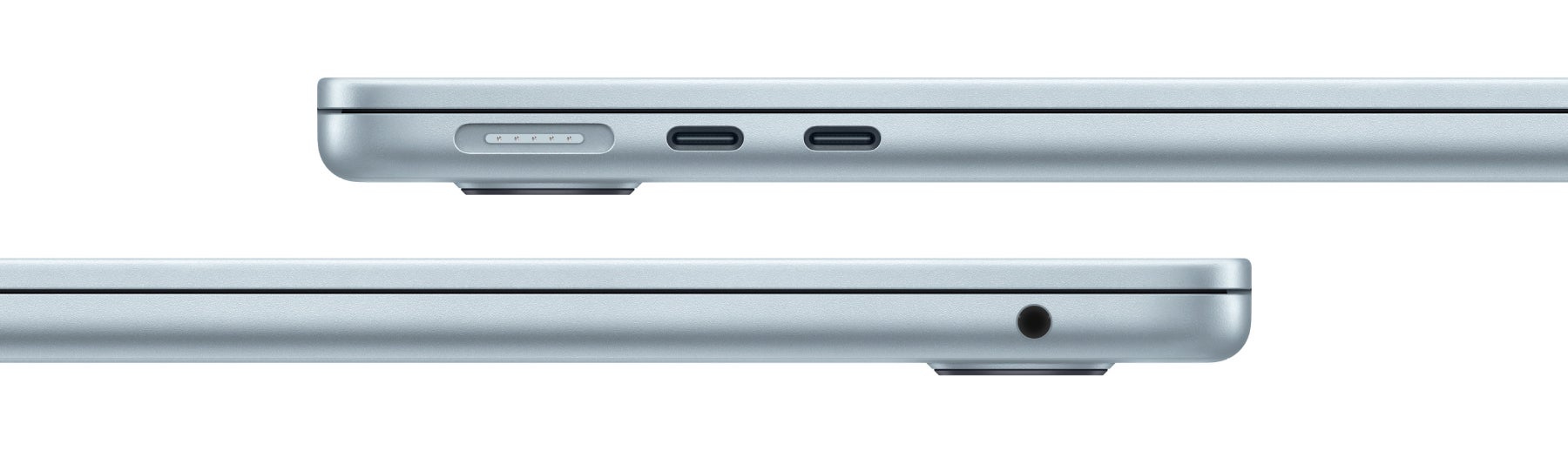 Что касается портов ввода-вывода, то в MacBook Air M4 мы получаем большее разнообразие, хотя здесь царит абсолютный минимализм. Он может похвастаться двумя портами Thunderbolt 4 (USB-C), которые поддерживают зарядку, вывод на DisplayPort, а также скорость передачи данных до 40 Гбит / с. Вы также можете подключить два внешних экрана с разрешением до 6K к MacBook Air M4, первому в линейке MacBook Air.