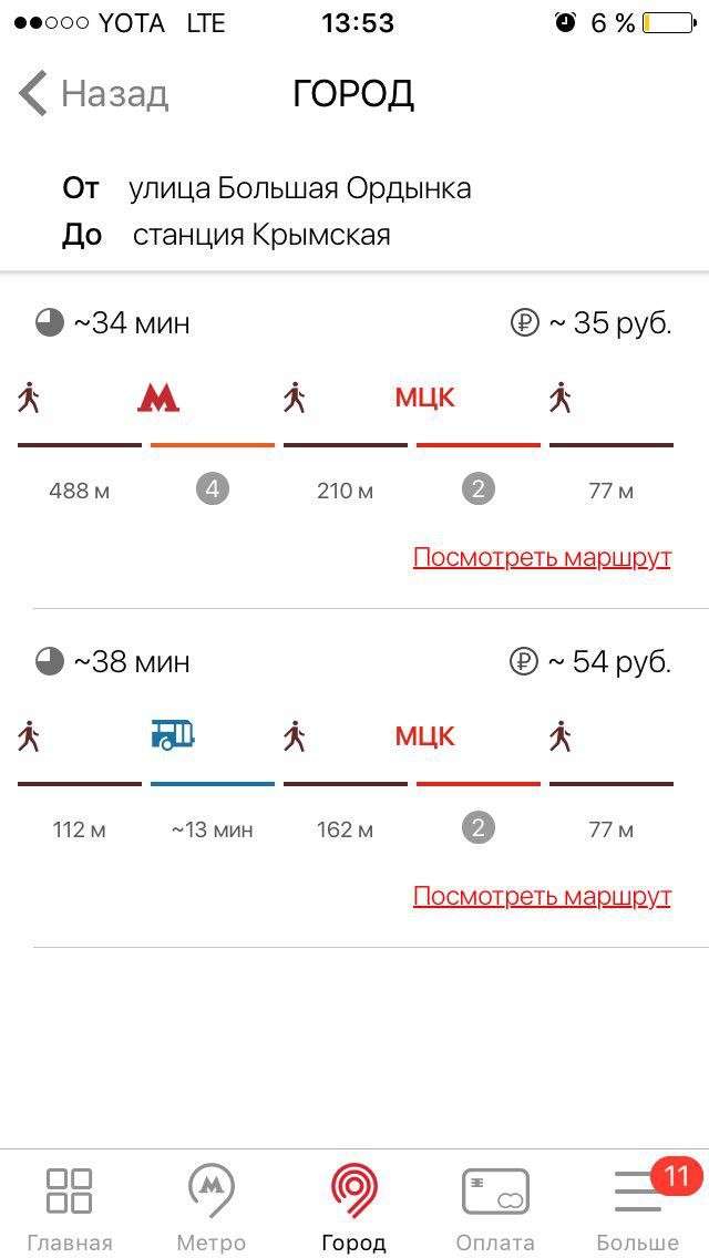 Сразу же хочется сказать, что приложение «Метро Москвы» со своей основной функцией справляется не полностью. Все маршруты прокладываются верно, дается несколько альтернативных вариантов, а еще очень важно, что рассчитывается и стоимость поездки, но время в пути указано неправильное.