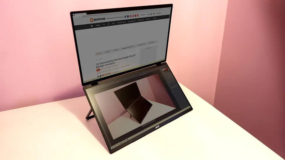 Что вам нужно знать: что ж, это нечто иное. Acer, по сути, объединил две панели в одну, чтобы создать эту впечатляющую складную конструкцию — Acer PD3. И не только это: компания решила пойти ва-банк, выбрав два больших 18,5-дюймовых экрана вместо меньших 15-дюймовых, и благодаря складной конструкции PD3 по-прежнему довольно легко транспортировать, что делает его отличным выбором для тех, кому нужна портативная офисная система.