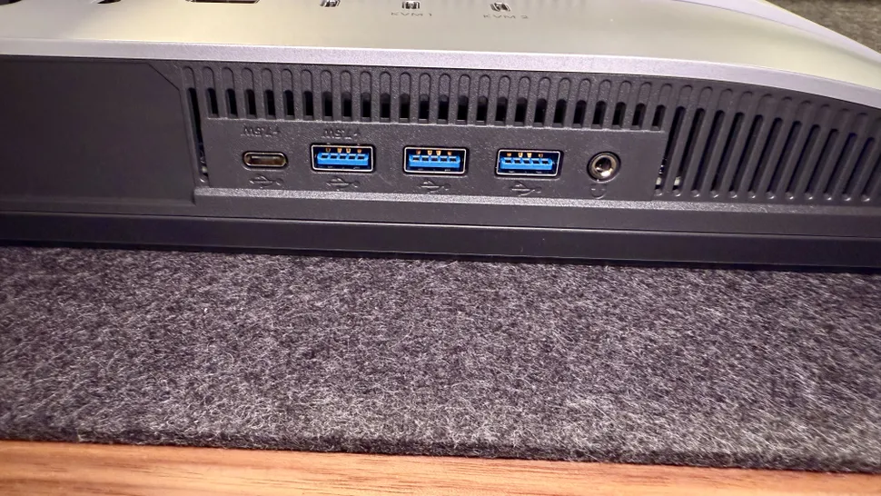 Здесь есть все необходимые регулировки, позволяющие изменять высоту, наклон, поворот и ориентацию дисплея в портретном режиме. Нам также очень понравились возможности подключения, особенно подача питания мощностью 90 Вт через порт USB-C.