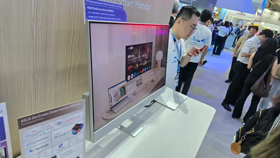 Вот почему монитор Asus ZenScreen Smart MS32UC привлёк моё внимание. Это стильный 31,5-дюймовый 4K-монитор с IPS-панелью, поддержкой 98% цветовой гаммы DCI-P3 (поэтому телешоу и фильмы должны выглядеть великолепно) и встроенными динамиками Harman Kardon, которые должны отлично справляться со своей задачей: все, что вы смотрите, звучит так же хорошо, как и выглядит (из-за того, что я смотрел это на оживленном мероприятии с большим шумом, я не смог протестировать динамики, но мы обязательно проверим их на практике, когда будем полностью рассматривать этот монитор в будущем).