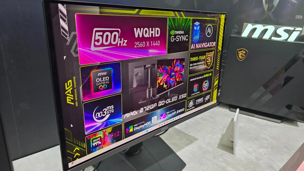 MSI MAG 272QP QD-OLED X50 обладает очень впечатляющими характеристиками. Этот игровой монитор с разрешением 1440p не только оснащен QD-OLED-панелью, благодаря которой игры выглядят яркими и насыщенными даже в неидеальных условиях большого конференц-зала, но и имеет невероятную частоту обновления 500 Гц.