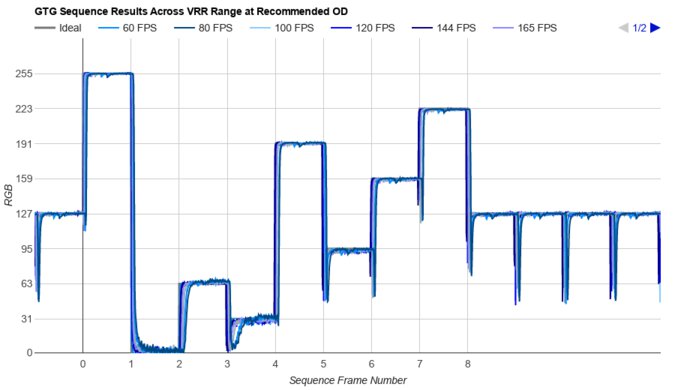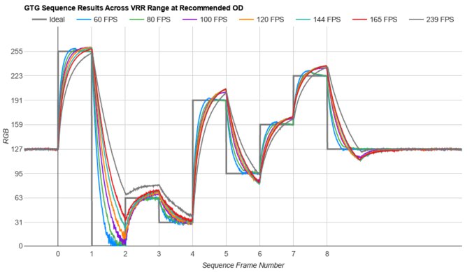 Он даже лучше справляется с движением, чем LG, поскольку время отклика остаётся стабильно быстрым в диапазоне частоты обновления. В сочетании с высокой частотой обновления это делает его отличным выбором даже для профессиональных геймеров. Однако он ограничен в дополнительных функциях, но всё же имеет типичные игровые преимущества, такие как виртуальное перекрестие и стабилизатор тёмного режима, которые помогают лучше видеть противников в тёмных сценах.