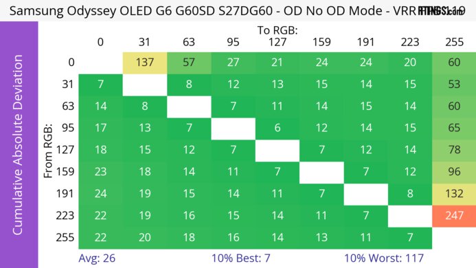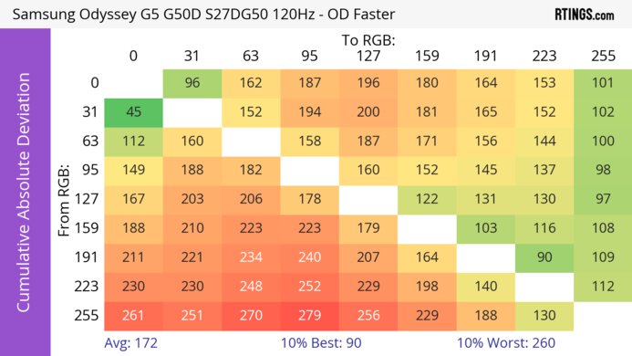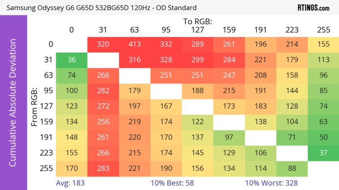 Кроме того, у этого монитора частота обновления 240 Гц с хорошей обработкой движения во всём диапазоне частоты обновления. Однако у него более медленное время отклика при 60 Гц, что приводит к размытию движения и худшей игровой производительности по сравнению с мониторами более высокого класса. Положительным моментом является разрешение 1440p, обеспечивающее детализированную картинку, но если вам нужно что-то с более высоким разрешением, Samsung Odyssey G7/G70B S32BG70 — это альтернатива с разрешением 4K. Однако у него более низкая частота обновления и, как правило, он стоит дороже, поэтому G65D — лучший выбор для большинства геймеров.