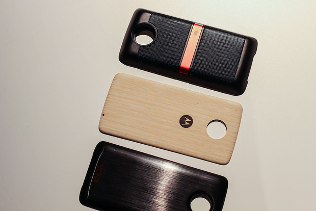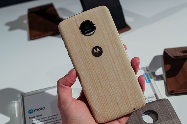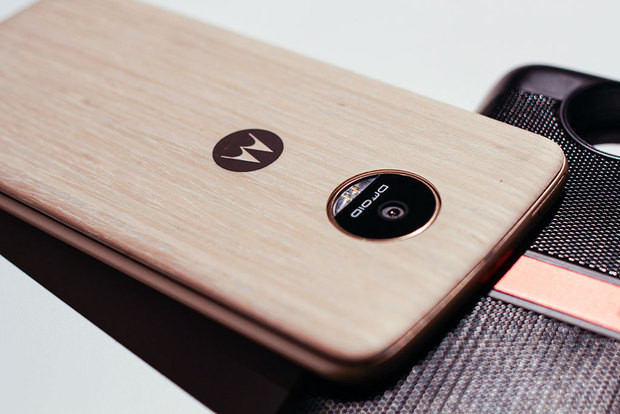 Это один из примеров Moto Mods для Moto Z – забавная крышка с бамбуковым рисунком, которая крепится к телефону на магнитах