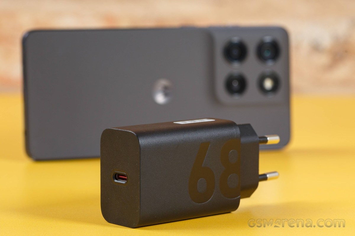 Устройство поддерживает проводную зарядку на 68 Вт и может заряжаться без проводов на мощности до 15 Вт. Блока питания в коробке нет, поэтому мы проводили замеры с фирменным 68-ваттным адаптером от Motorola.