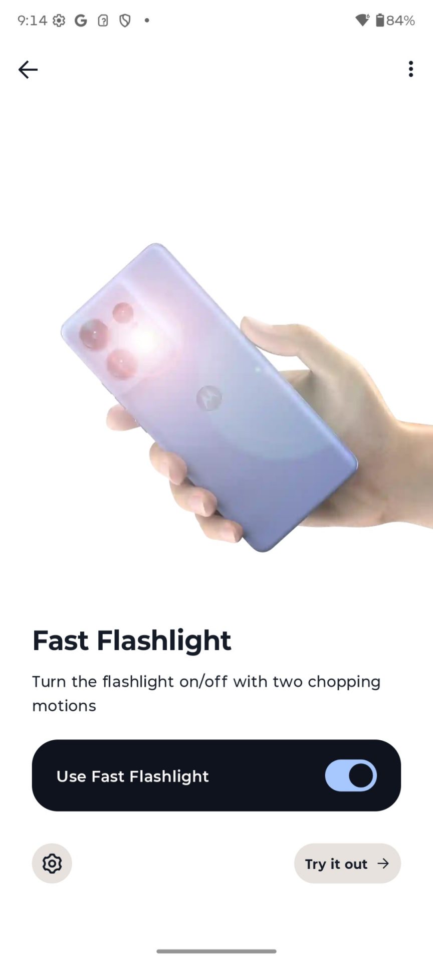Зато классические жесты Moto на месте. Вы можете назначить запуск нужного приложения на двойное постукивание по спинке, а фирменное «рубящее» движение для включения фонарика и вращение запястьем для быстрого запуска камеры работают всё так же безотказно.