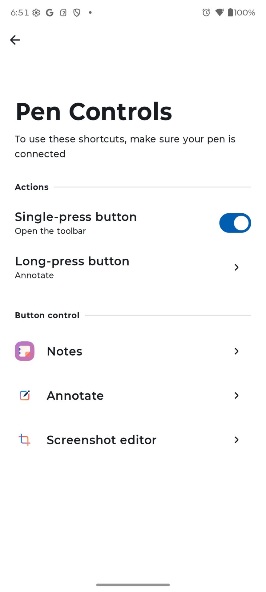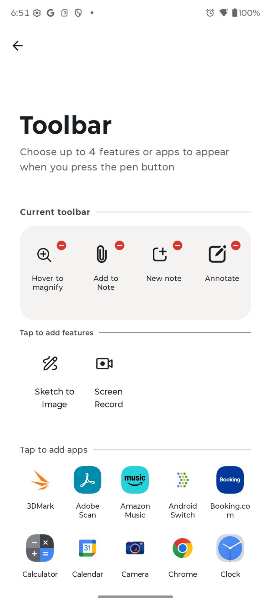 Как только вы достаете перо, на экране появляется удобное плавающее меню с быстрыми действиями: создать заметку, сделать скриншот с пометками, включить экранную лупу. Меню можно настраивать под себя.