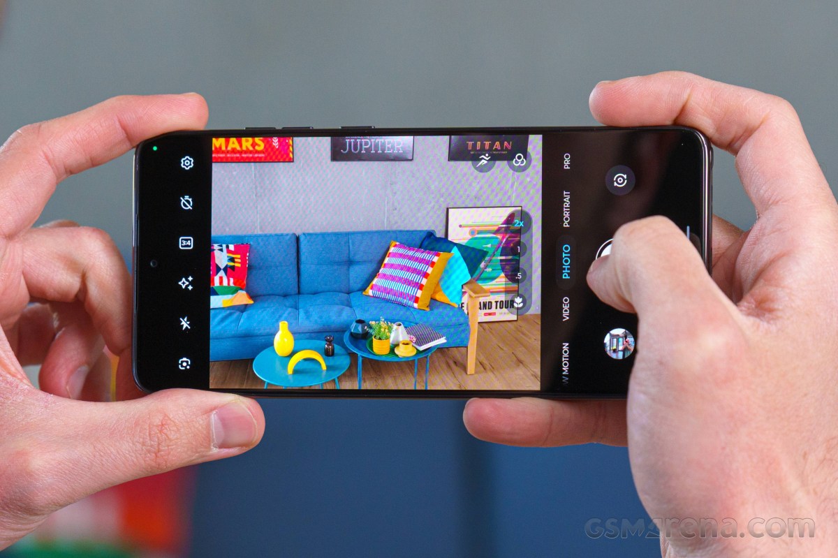 Главную скрипку играет сенсор Sony Lytia 700C на 50 МП (размер 1/1,56 дюйма) со светосилой f/1.8 и оптической стабилизацией. За широкие углы и макросъемку отдувается 13-мегапиксельный датчик с автофокусом — и это здорово, поскольку он умеет фокусироваться на очень близких объектах. Селфи-камера на 32 МП лишена автофокуса, но радует широким углом захвата (22 мм). Третий глазок на спинке, как я уже упоминала, — просто муляж для красоты.