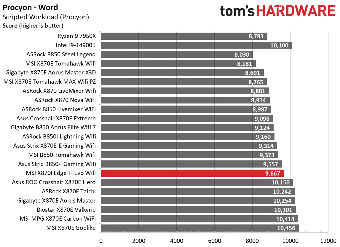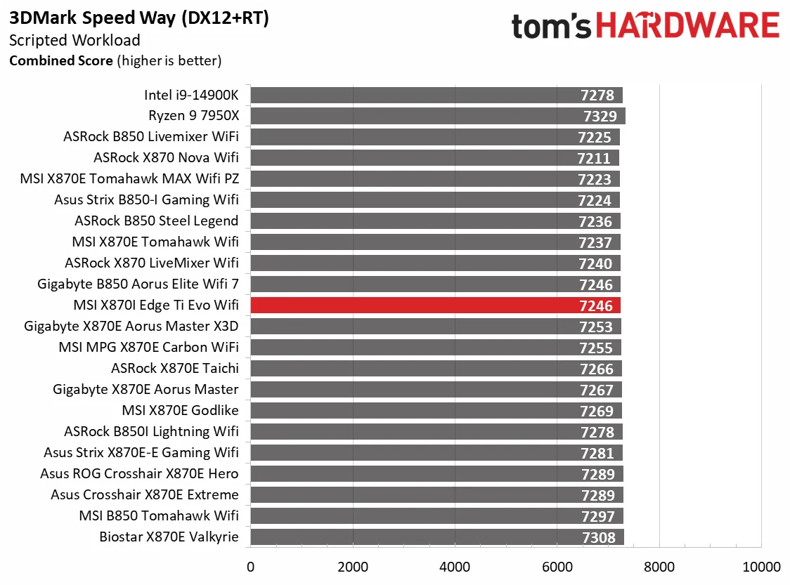 Синтетические тесты представляют собой ценный метод оценки производительности материнской платы, поскольку ожидается, что идентичные настройки дадут схожие результаты. Однако, несмотря на это, производители материнских плат могут оптимизировать производительность, уделяя внимание таким параметрам, как потребляемая мощность в режиме Turbo Boost и расширенные тайминги памяти, и эти настройки могут влиять на конкретные сценарии тестирования.
