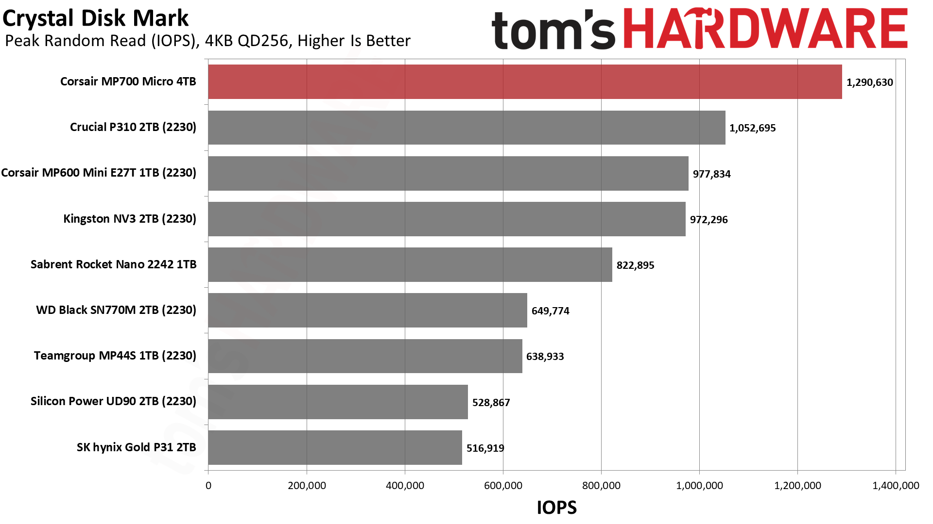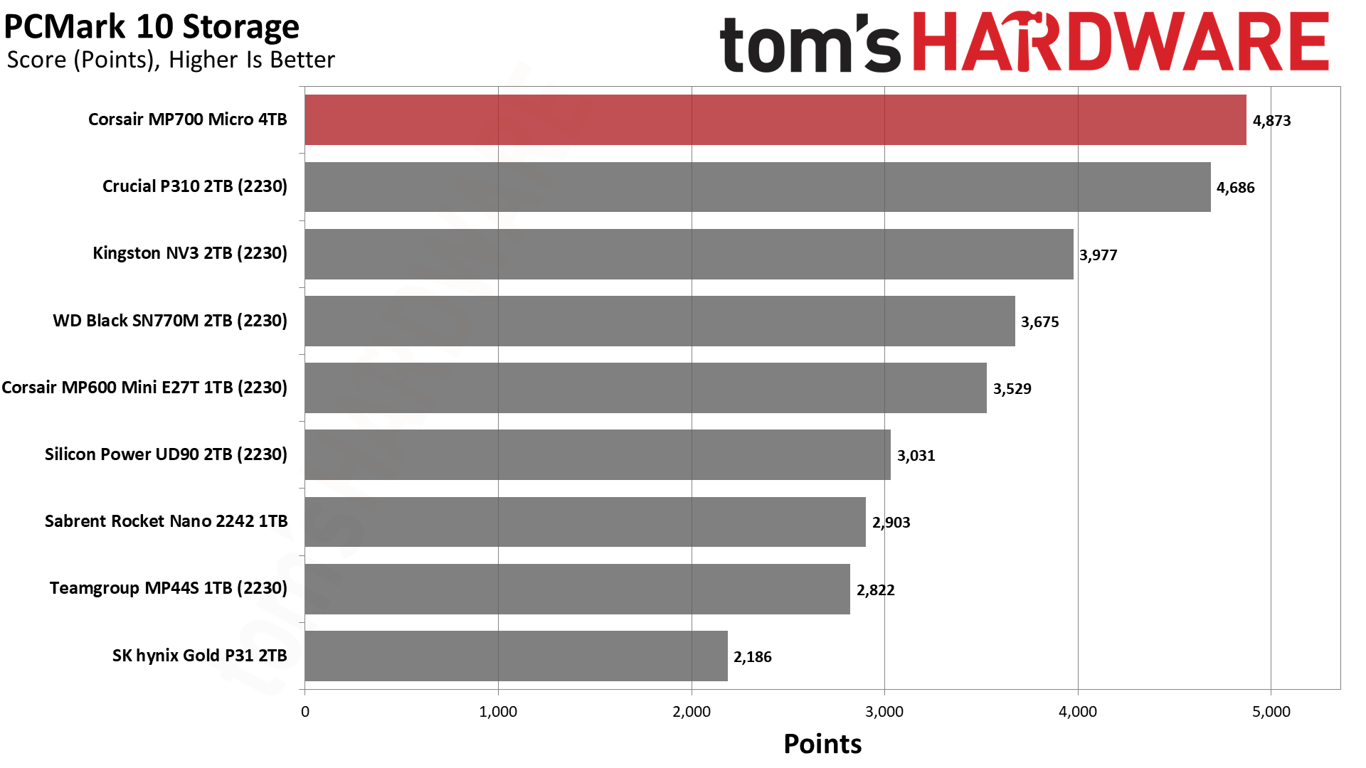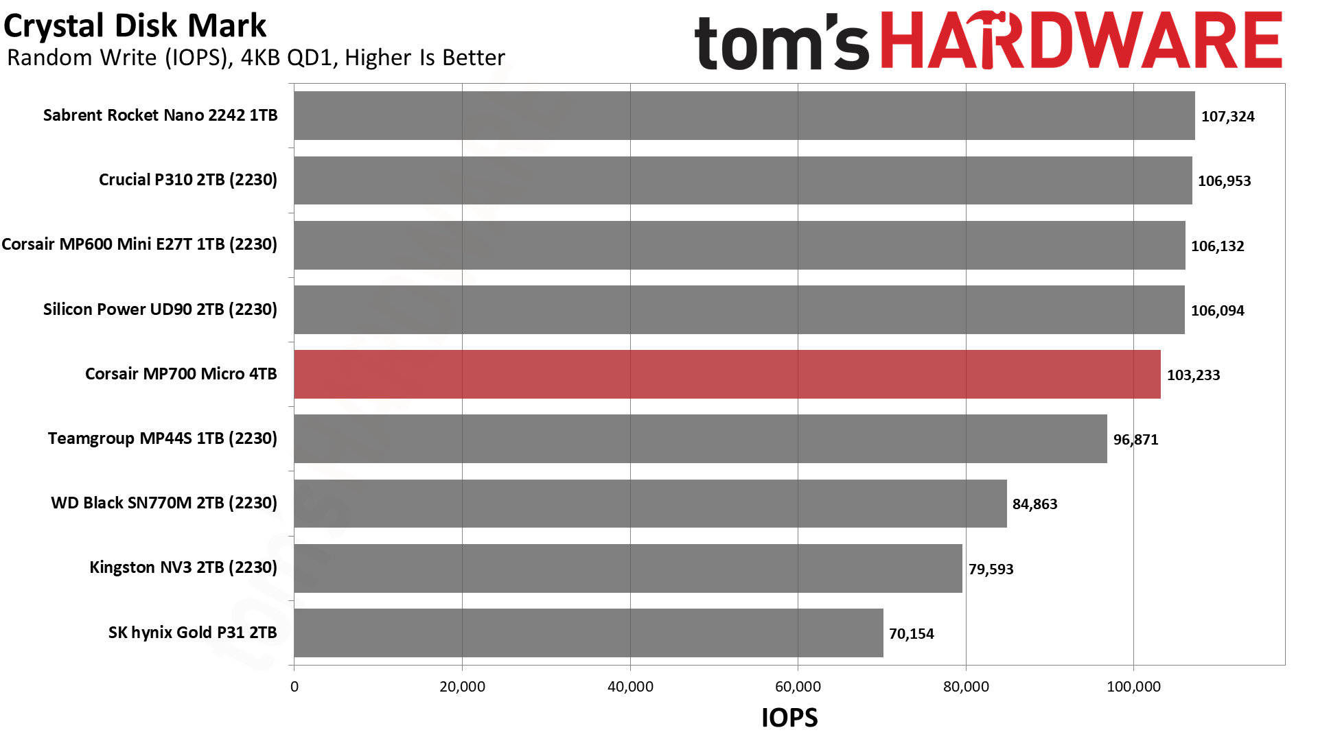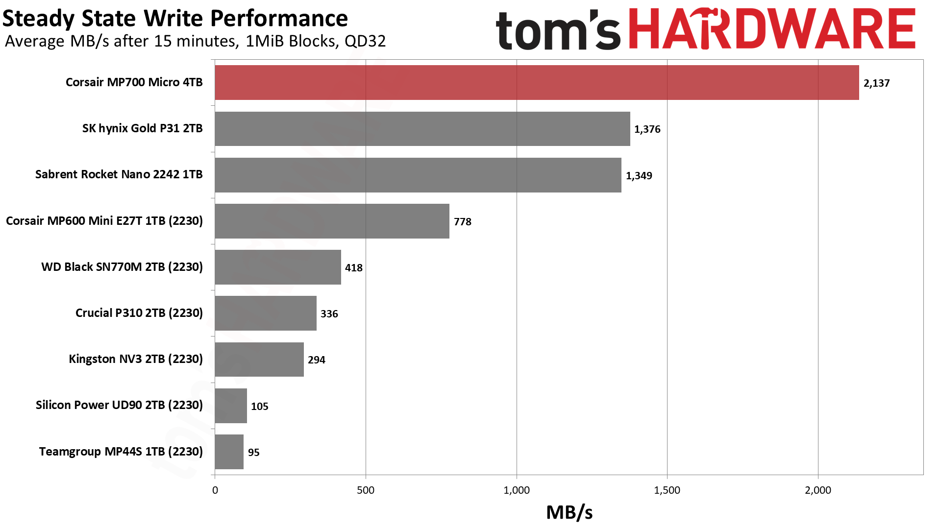 MP700 Micro обеспечивает невероятно высокую пропускную способность для своего класса. Crucial P310 тоже хорош, но с уходом Crucial с потребительского рынка освободилась ниша для компактных дисков, где MP700 Micro сейчас является явным фаворитом.