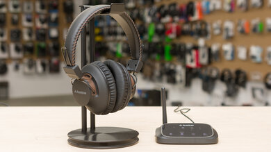 Эти накладные наушники для телевизора работают без подзарядки более 34 часов, поэтому вам не придётся часто их заряжать, даже если вы используете их каждый день. А если вы забудете их выключить, они перейдут в режим ожидания, чтобы сэкономить заряд батареи. Беспроводной передатчик также обеспечивает достаточно низкую задержку, чтобы свести к минимуму сбои в синхронизации звука. Передатчик также позволяет подключить к телевизору ещё одну пару Bluetooth-наушников, если вы хотите посмотреть фильм с кем-то ещё. Как ни странно, у них есть встроенный микрофон, который пригодится, если вы захотите время от времени совершать звонки. Однако микрофон работает неудовлетворительно, и другим людям может быть сложно вас хорошо слышать.