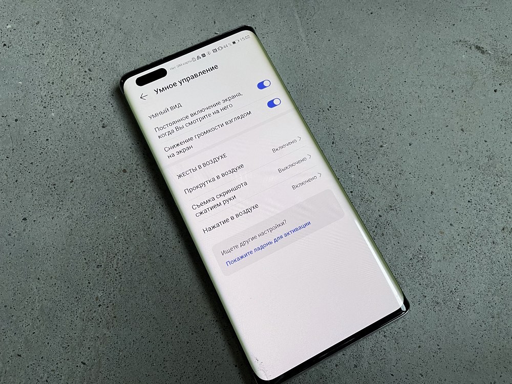 Экран Huawei Mate 40 Pro включаются только от взгляда хозяина (разработчики называют это EoD или Eyes on Display), и это более энергоэффективное решение, чем Always On Display). Еще можно скроллить, делая пасс ладонью в воздухе (суперштука, когда у вас грязные руки), а отвечать на вызов — приблизив ладонь к дисплею. Работает это пока, правда, не очень четко, и приноровиться делать все эти пассы на нужном расстоянии не так-то просто, ну так и дактосканеры когда-то были — обнять и плакать. В любом случае, управлять смартфоном с помощью жестов — это очень круто.
