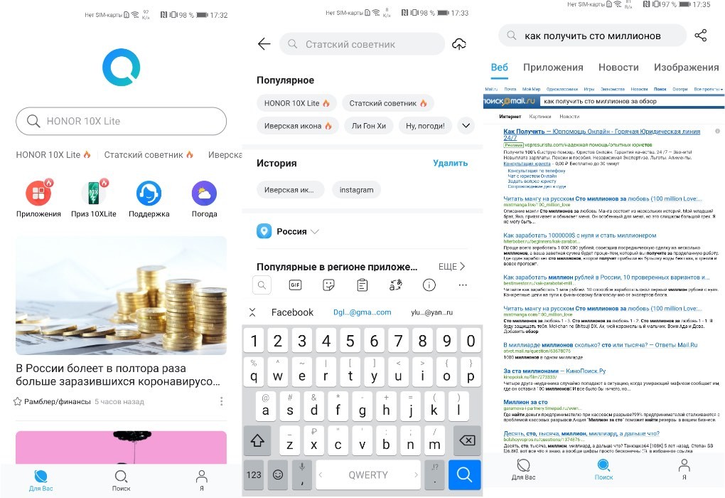 На практике же в русскоязычной версии приложения мы получаем Поиск@Mail.ru (а с релевантностью у него так себе) и, что еще более грустно, беззастенчивую рекламу собственных продуктов Huawei. Хороший пример — как выглядит топ поисковых запросов по версии Petal Search за пару недель до выхода их нового смартфона.