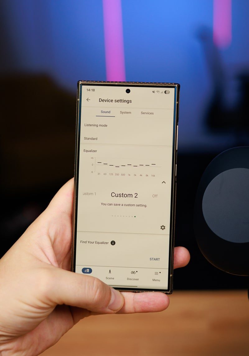 У наушников Sony определенно есть свой характерный звук. Прямо из коробки они звучат с мощным, уверенным басом и некоторой резкостью на высоких частотах. Звуковая сцена широкая, инструменты хорошо разделены. В приложении доступен 10-полосный эквалайзер для тонкой настройки, или же можно воспользоваться функцией Your Sound, чтобы просто слушать и выбирать из готовых пресетов. После того как вы выберете пресет, приложение сохранит его как профиль эквалайзера, который затем можно будет доработать по своему усмотрению.