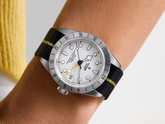 Tudor Black Bay Pro с белым опаловым циферблатом — один из лучших релизов Tudor на выставке Watches & Wonders 2025. Иногда простая смена цвета циферблата может возродить нашу любовь к одной из самых недооценённых моделей бренда, и в данном случае это так. Они сохранили те же характеристики, что и раньше, включая корпус диаметром 39 мм, фиксированный стальной безель с 24-часовым циферблатом, жёлтую 24-часовую стрелку «Снежинка» и собственный калибр MT5652 с функцией «лётчика» GMT, но это нормально. У них красивый контраст, как у Explorer II «Polar», и вы можете выбрать один из трёх вариантов ремешка: стальной браслет с заклёпками, плетёный чёрный жаккардовый ремешок с жёлтым акцентом или гибридный ремешок из резины и кожи, состоящий из двух частей. Если бы только на нем не было заклепок!