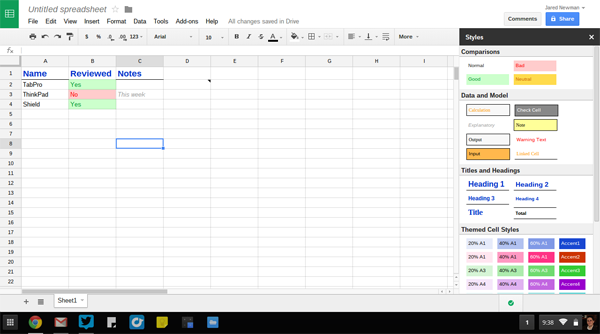 С помощью расширения Styles для Таблиц Google вы сможете быстро придать своей электронной таблице красивый внешний вид. Выделите ячейки, которые нужно отформатировать, и выберите один из 42 определенных в программе визуальных стилей. К сожалению, возможность создания и сохранения своих собственных стилей здесь не поддерживается, но она должна появиться в версии Pro, которая уже на подходе.