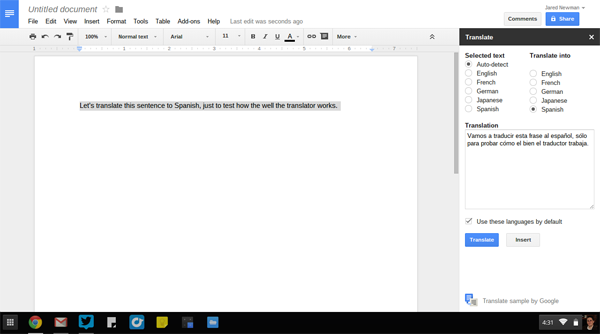 Если вы часто пользуетесь Переводчиком Google, модуль расширения Google Translate поможет вам сэкономить немало времени. Вместо того чтобы открывать Переводчик в новом окне браузера, выделите текст и переведите его прямо внутри документа.