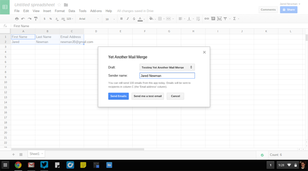С помощью расширения Yet Another Mail Merge вы сможете генерировать формы писем из электронной таблицы и управлять электронной почтой. После вставки в сообщение Gmail специальных синтаксических конструкций пользователь обращается к соответствующему расширению в Таблицах Google, выбирает нужное сообщение и отправляет его по электронной почте. Совсем уж интуитивно понятным это расширение не назовешь, но встроенная система помощи упрощает решение стоящих перед вами задач. Yet Another Mail Merge позволяет отправлять 99 сообщений в день, чего должно быть вполне достаточно.