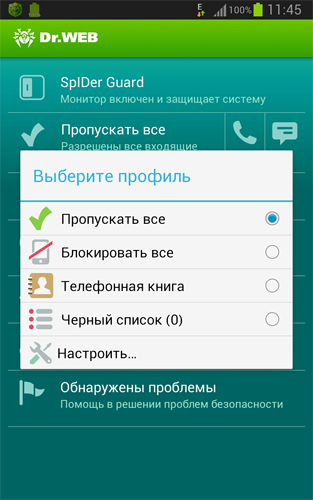 Платная версия Dr.Web для Android 9.01.4 сканирует файлы автоматически, либо предлагая проверку по выбранным пользователем каталогам и прочие дополнительные функции. Кроме того, предусмотрена возможность защиты от массовых рассылок рекламных SMS, а функция «Антивор» даже при утере телефона не только защитит ваши данные, но и поможет найти устройство при помощи GPS-координат и собственного сервиса управления.