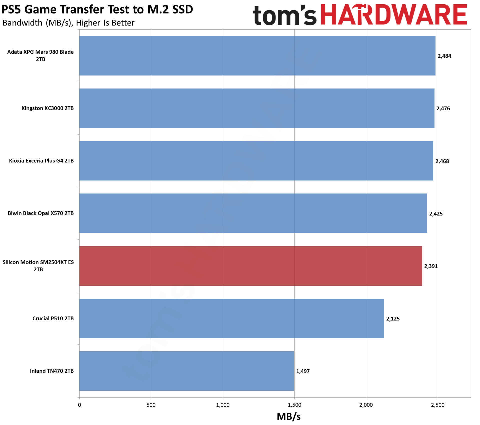 Восемь каналов по-прежнему полезны для максимальной скорости записи, а наличие DRAM улучшает мелкоблочное чтение. Но SM2504XT ES, похоже, прыгает выше головы, оправдывая звание «PCIe 5.0 среднего уровня». Если он может на равных тягаться с X570 (который позиционируется выше), то он становится очень сильным игроком. Единственное ограничение — меньший потенциал максимальной емкости.