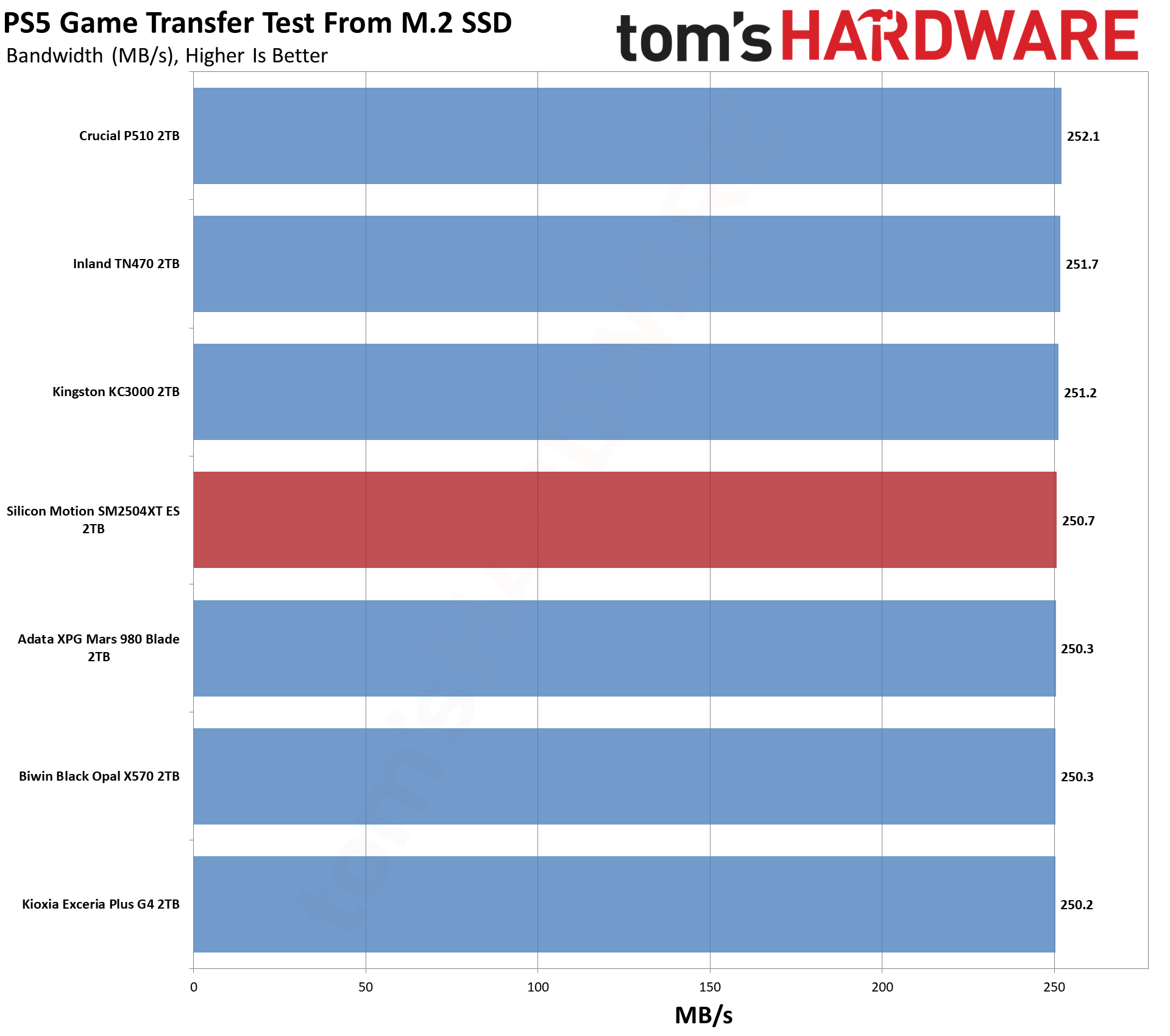 Вердикт для PS5: Мы считаем, что для консоли можно найти варианты получше, если ваша цель — экономия. Существует множество дисков PCIe 4.0, которые стоят дешевле, обеспечивая тот же уровень реальной производительности в играх. Тем не менее, SM2504XT ES будет работать на PS5 превосходно и без перегрева.