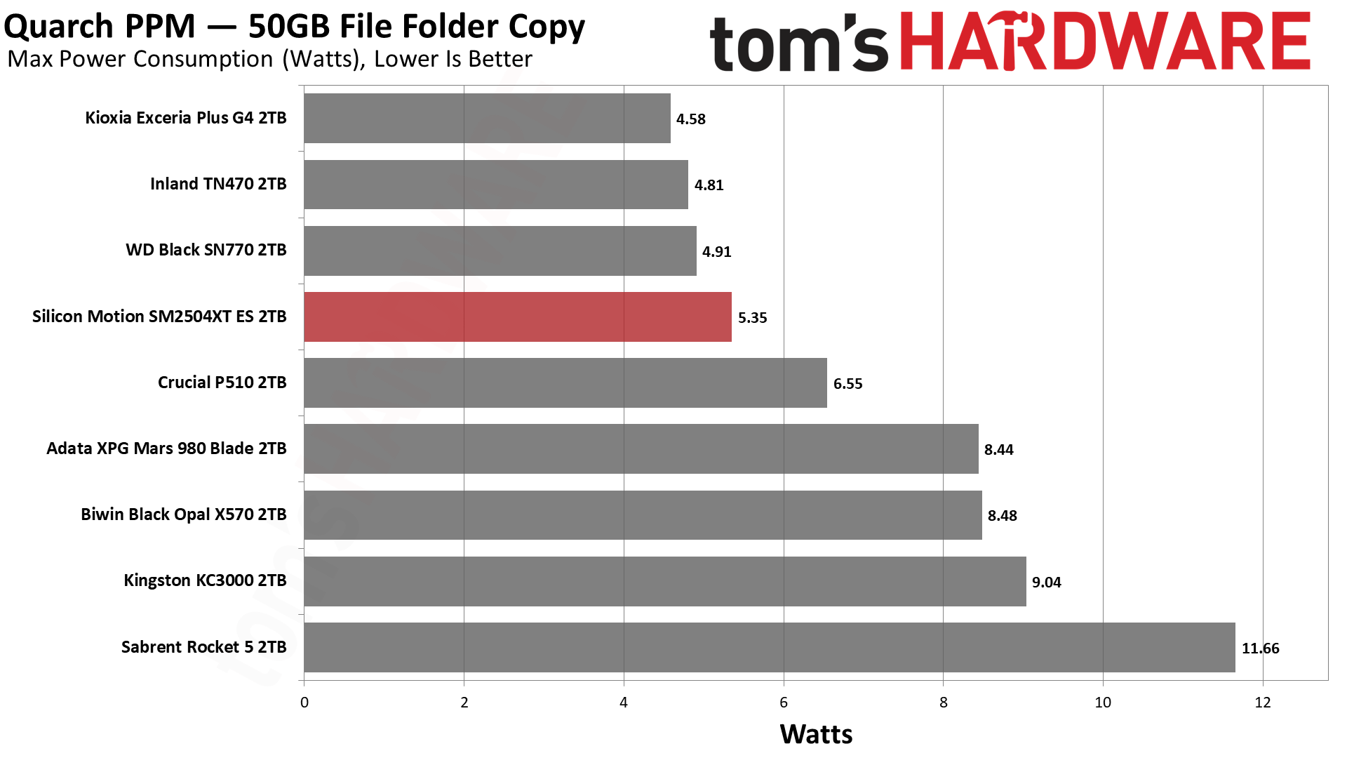 SM2504XT ES может похвастаться превосходной энергоэффективностью, занимая первое место с небольшим отрывом от Kioxia Exceria Plus G4.