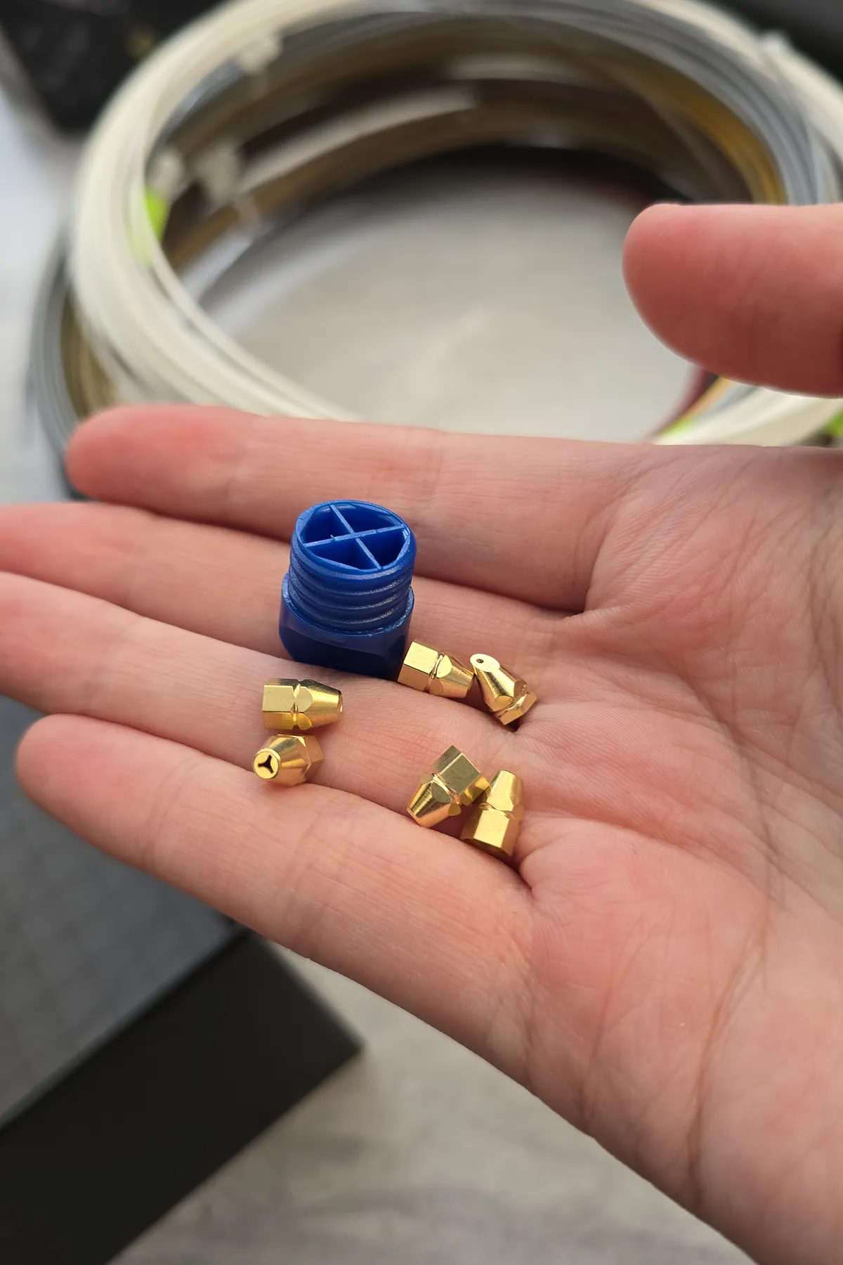 | Диаметры насадок в наборе: | 0,5 мм, 1,5 мм, треугольник, лента, лапша, под углом |