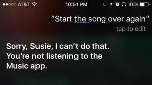 Фраза «Вернись на трек назад» приведет к тому, что Siri снова запустит текущий трек. Но кто хочет мучиться с постоянными ошибками распознавания и глючной Siri, если раньше для этого была простая кнопка?