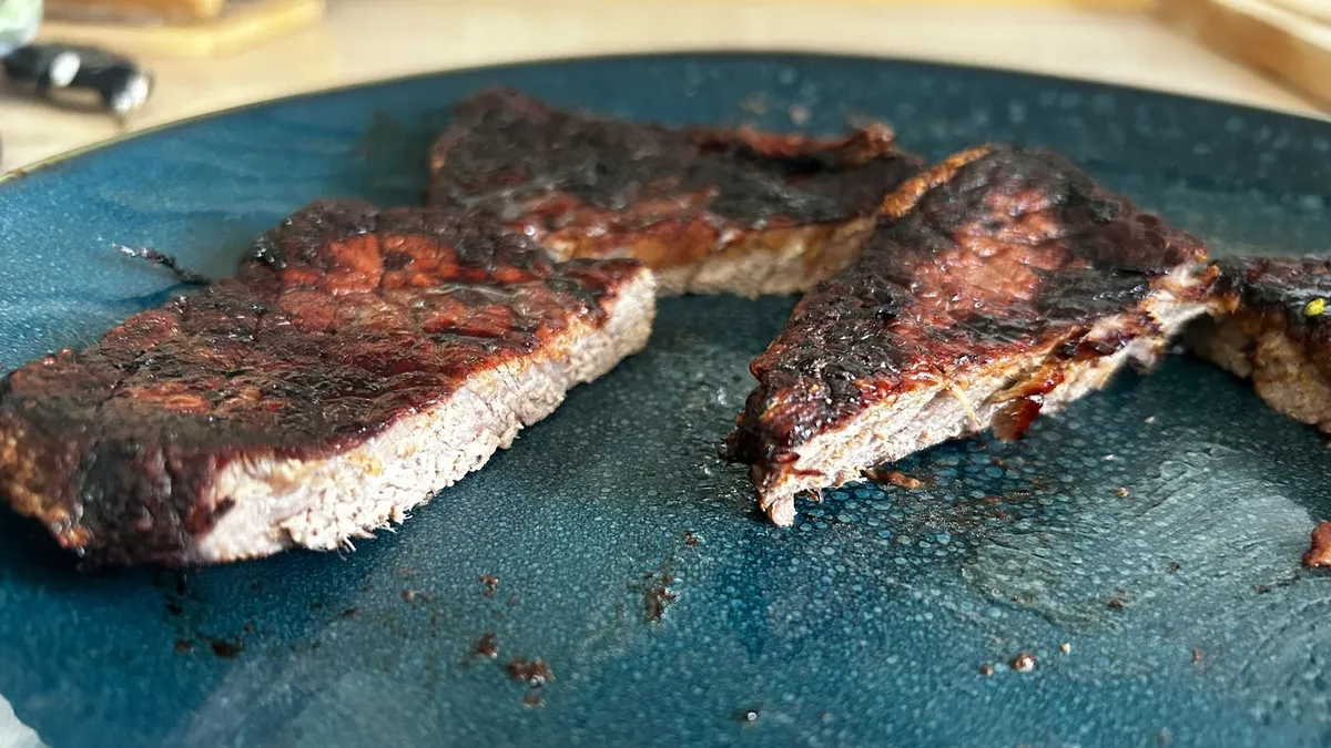 Таблица продуктов рекомендует, что в одну корзину помещается четыре стейка, но я серьезно в этом сомневаюсь, так как мне было бы трудно добавить больше двух. То, как вы любите свой стейк, – это личное предпочтение, и без указаний по времени для конкретной степени прожарки я оставил стейки на полное время предустановки и получил два куска мяса, похожих на кожу. Их было словно жевать старые ботинки. Одна сторона каждого была хорошо поджарена, а другая – нет, и они были суше Сахары. Вероятно, с этим можно поэкспериментировать, чтобы получить нужную степень прожарки, но мой совет таков: просто не готовьте стейк в аэрофритюрнице.