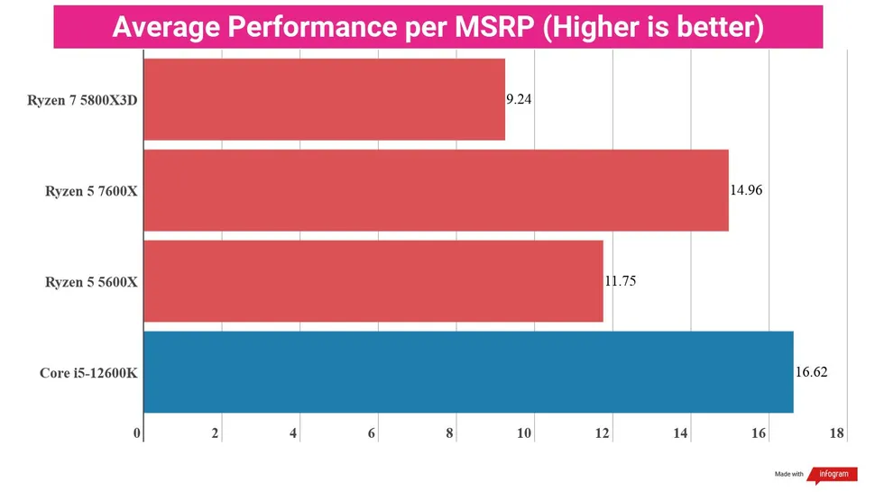 Ryzen 5 7600X не сильно отличается по цене от неизменно надёжного Ryzen 5 5600X. Возможно, немного удручает тот факт, что это стало преимуществом при продаже, но, учитывая прирост производительности по сравнению с 5600X, это определённо хорошо.