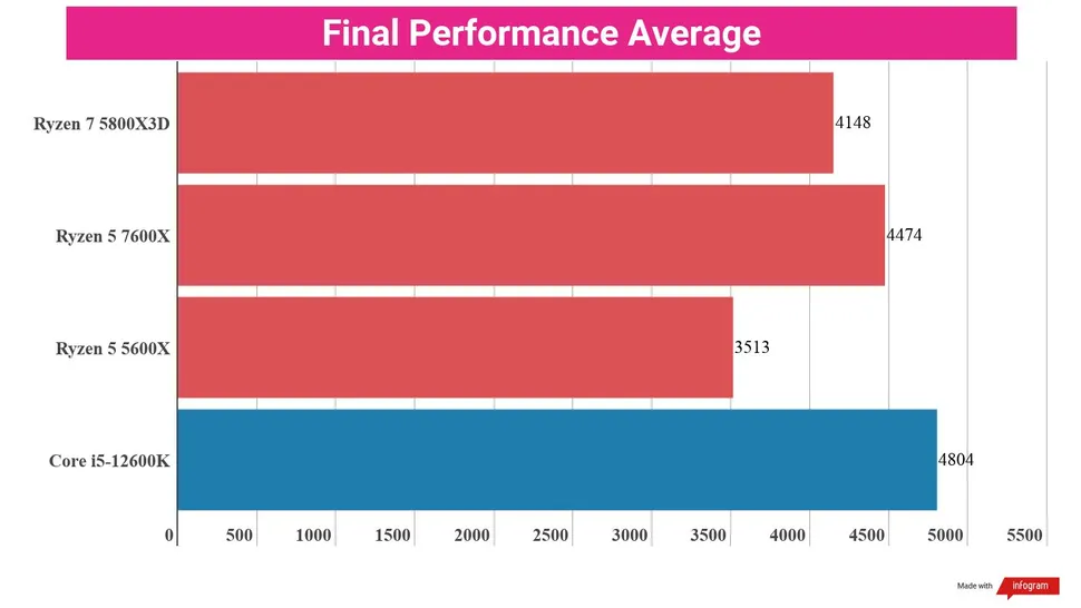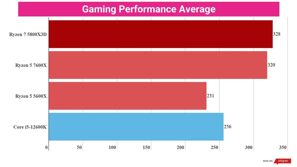 - В среднем производительность выше на 27 % по сравнению с 5600X