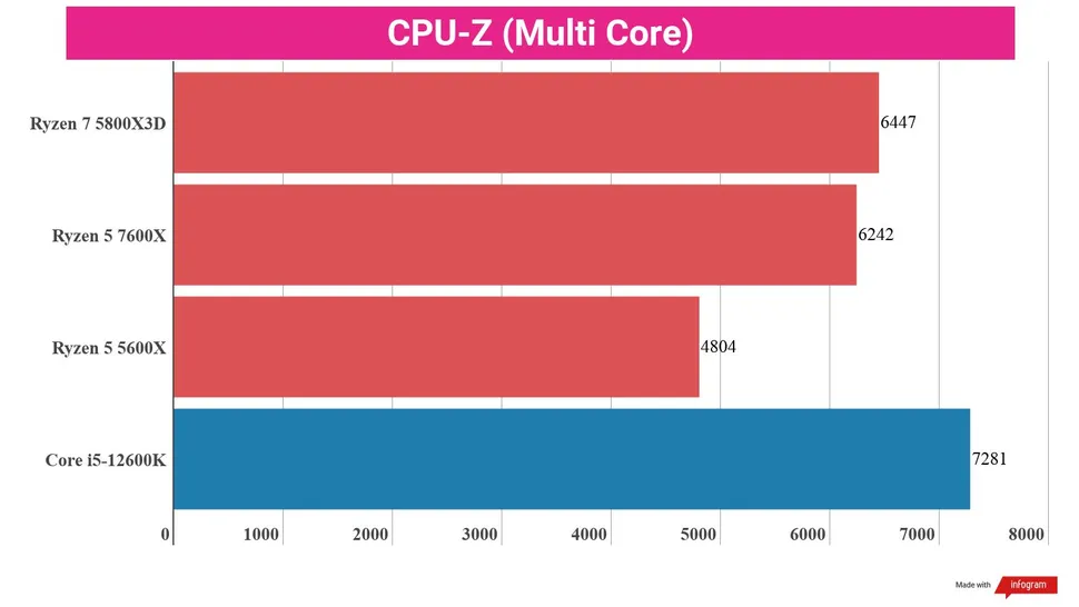 - Intel Core i5-12600K. Если вы предпочитаете Team Blue, то это, пожалуй, самый близкий к Ryzen 5 7600X процессор на данный момент. i5-12600K обеспечивает фантастическую многоядерную производительность при более низких температурах, чем 7600X, хотя и стоит немного дороже.