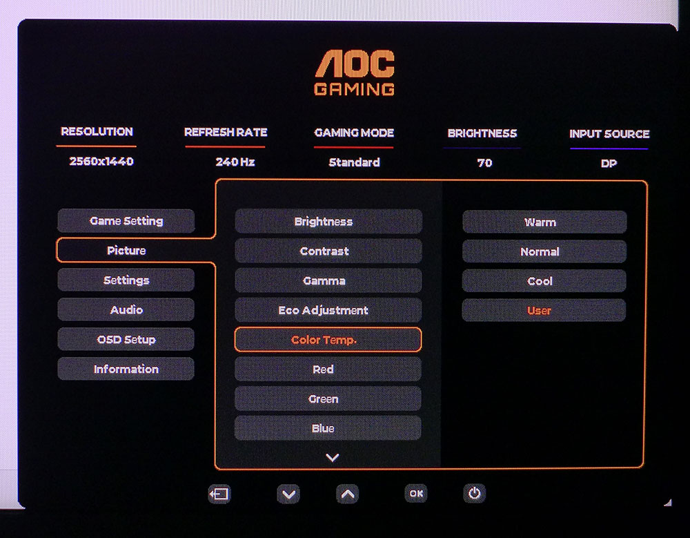 Вам не нужно калибровать Q27G4ZMN в стандартном игровом режиме. Также лучше оставить Eco Mode в значении Standard. Я подстроил ползунки RGB для немного лучшего отслеживания оттенков серого, но это не оказало визуального влияния. Точность цветопередачи здесь очень высокая. Мои настройки показаны ниже.