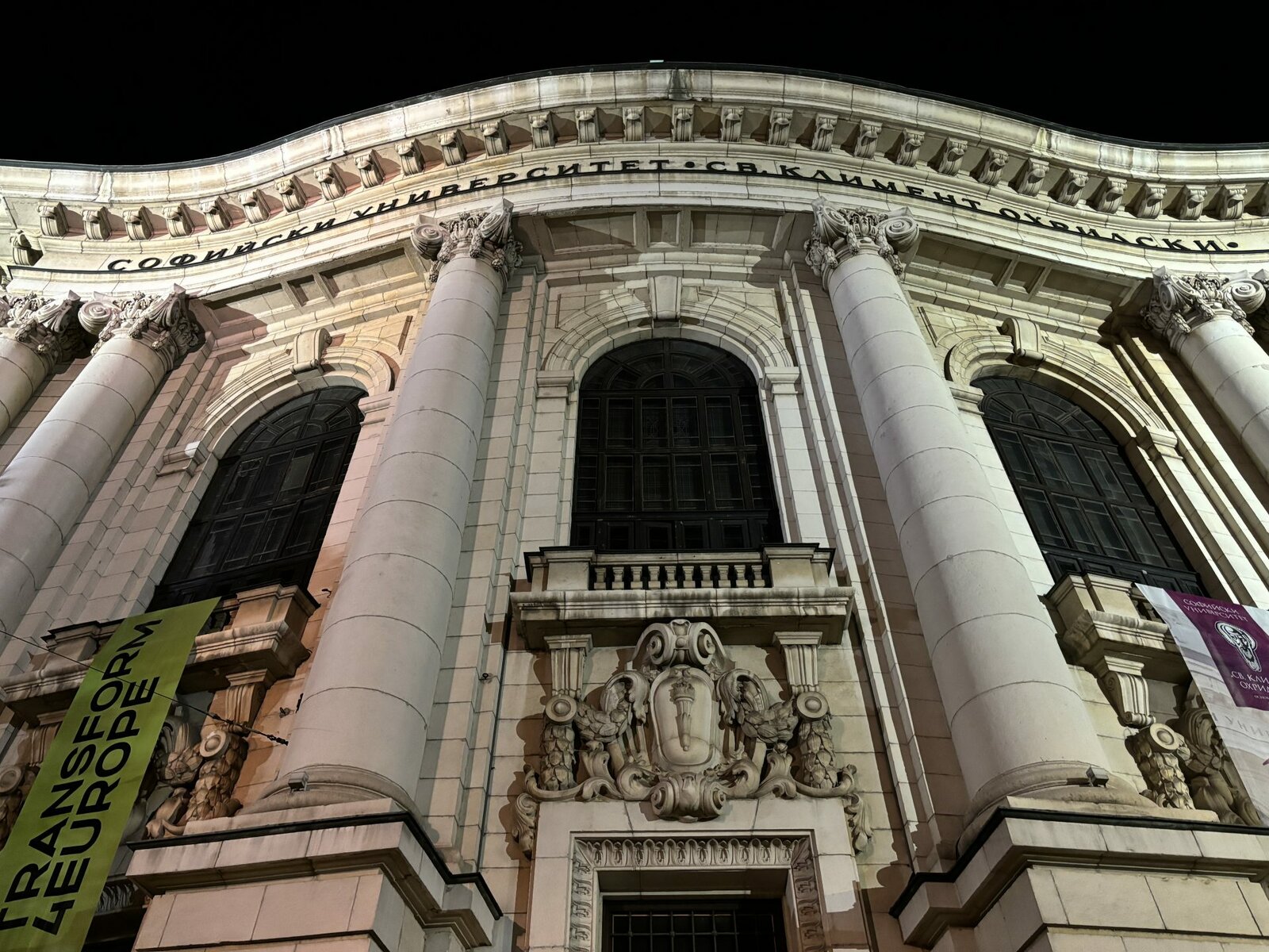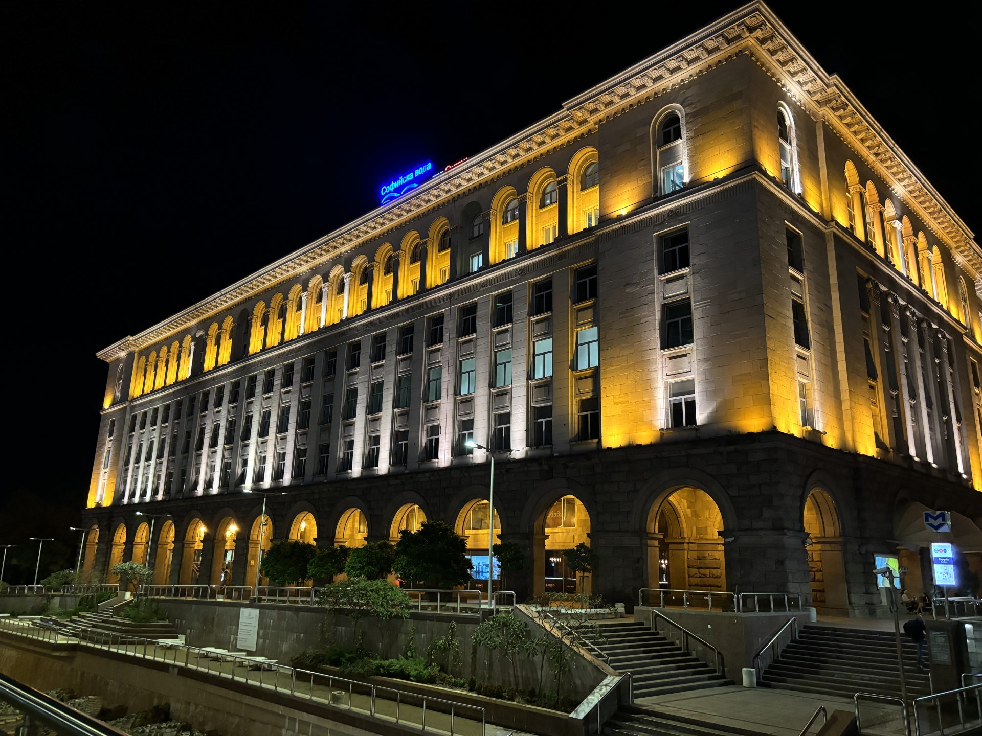 С другой стороны, сверхширокоугольная камера плохо справляется с ночной съёмкой. Снимки, сделанные сверхширокоугольной камерой, выглядят размытыми, зернистыми, и на них не хватает деталей. Цветовая температура немного не соответствует норме — она слишком тёплая, из-за чего некоторые источники света на заднем плане приобретают персиково-розовый оттенок. Однако динамический диапазон и контрастность впечатляют.
