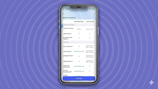 HomeGuardian Unlimited: $11 (0,9 тыс. руб.) в месяц или $110 (8,6 тыс. руб.) в год. Дает всё то же самое, плюс премиальные нейросетевые фишки. Например, ИИ может выдать вам краткую текстовую выжимку из записанного видео (в одно предложение) или найти нужный фрагмент по текстовому запросу. Поддерживает неограниченное количество камер в одном аккаунте.