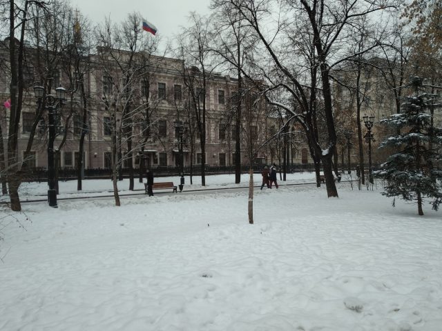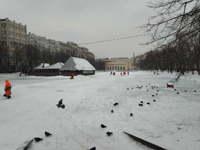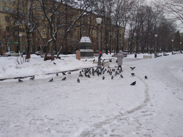 Съемка на улице смартфону удалась. Атмосфера тлена и уныния декабрьского московского дня передана верно. Но если серьезно, то к дневным фотографиям нет никаких претензий: баланс белого выдержан правильно, никаких искажений на фотографии не наблюдается. Даже летящий на переднем плане голубь получился не слишком размазанным.