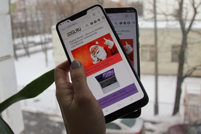 Оба смартфона получили дисплей диагональю 6,26 дюйма (старшая модель со стеклом Corning Gorilla Glass 6, которое, как говорят разработчики, в два раза прочнее пятой версии), и, возможно, здесь хотелось бы увидеть рамки чуть меньшего размера, но для смартфонов стоимостью менее 18 тысяч рублей такой дизайн вполне приемлем. Как и у других бюджетных смартфонов, нижняя рамка достаточно «толстая» — примерно 1 см.