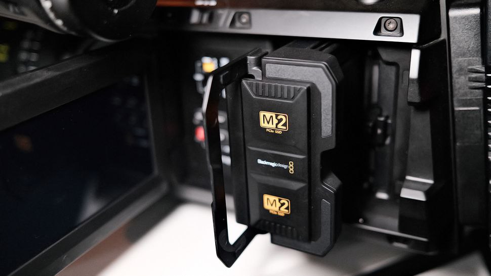 Память для хранения данных представлена в двух вариантах. Вы можете использовать карту памяти CF Express, но перед этим проверьте, какие карты поддерживаются, как и в случае с любой другой камерой. Или выберите накопители M.2, которые просто великолепны, хотя и они могут быстро заполниться. При максимальных настройках постоянного качества вы можете снимать более 2 часов, но при этом будет заполнено 8 ТБ. Однако этот показатель можно значительно снизить. Используйте Q3, открытый затвор при 24 кадрах в секунду, и вы получите более 7 часов съёмки. У Blackmagic есть удобный калькулятор, с помощью которого можно легко определить, какой баланс между качеством, скоростью и объемом памяти подойдет для ваших нужд.