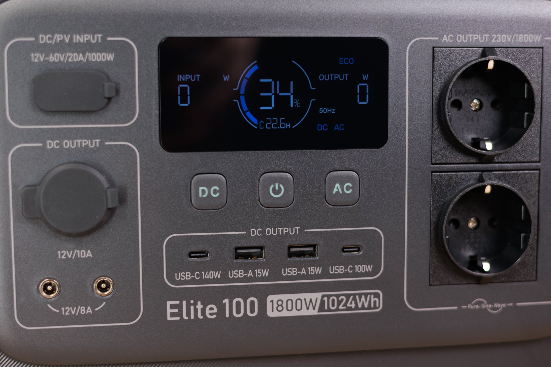У преемника EcoFlow Delta 2 ёмкость составляет 1024 Вт·ч, а мощность — 1800 Вт (с возможностью пиковой нагрузки 2600 Вт), так что он очень похож на Elite 100 v2. Он оснащён 13 розетками и обеспечивает сверхбыструю зарядку до 100 % всего за 56 минут. В модели есть две дополнительные розетки переменного тока (6 вместо 4), что делает её более практичной для домашнего использования.