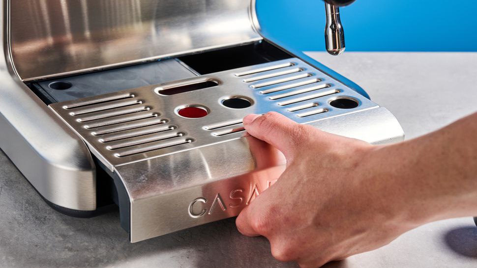 В остальном машина соответствует ожиданиям: резервуар для воды вмещает 2,1 л, в поддоне для сбора капель есть красная кнопка, которая поднимается, когда поддон заполнен, а корпус полностью металлический. Мне также нравится круглая выемка в верхней части машины, в которой идеально фиксируется темпер.