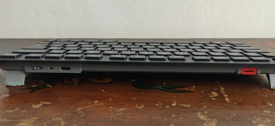 Для достижения столь малых размеров компания Cherry отказалась от цифровой клавиатуры и перенесла клавишу FN в правый нижний угол рядом со стрелками направления, чтобы не потеряться при смене клавиатуры (с полной на компактную).