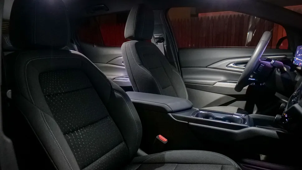 Несмотря на то, что сиденья Chevrolet Equinox EV LT 2025 регулируются вручную, нет беспроводной зарядки и подсветки в зеркалах заднего вида, я был немного удивлён, когда узнал, что Chevrolet оснащает свои автомобили камерой заднего вида. Она пригодилась, когда я пытался припарковаться в ограниченном пространстве, но изображение было очень прерывистым, а ночью оно становилось ещё хуже из-за шума.