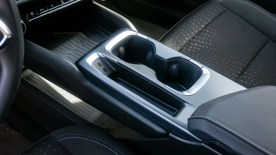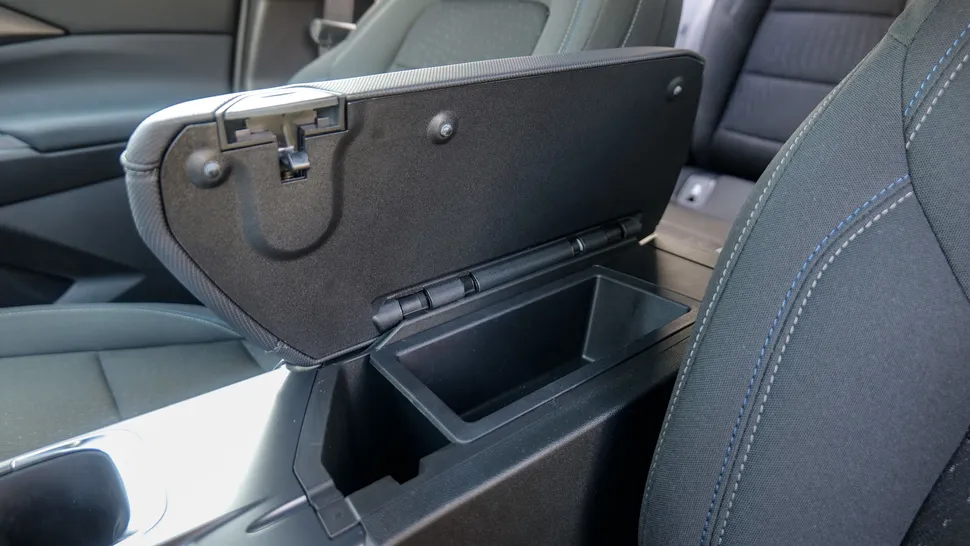 Ещё одна функция, которая, по-видимому, стала стандартной для электромобилей, — встроенная беспроводная зарядка для телефонов. В Chevrolet Equinox EV LT 2025 такой функции нет, поэтому вам придётся использовать проводное подключение. Подставка между передними сиденьями — это просто место для хранения вещей. Если вам необходима беспроводная зарядка, вам придётся доплатить 664 тыс. рублей за пакет Convenience, в который входят беспроводная зарядка, электропривод водительского сиденья, зеркало заднего вида с автоматическим затемнением и многое другое.