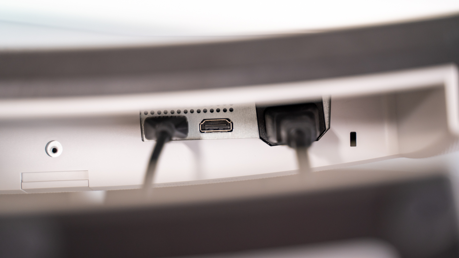 Так как монитор довольно большой, добраться до портов непросто. Они не только расположены ближе к центру задней панели (динамики находятся по обеим сторонам от них), но и направлены вниз. Нам приходилось каждый раз класть монитор экраном вниз, чтобы получить доступ к портам.