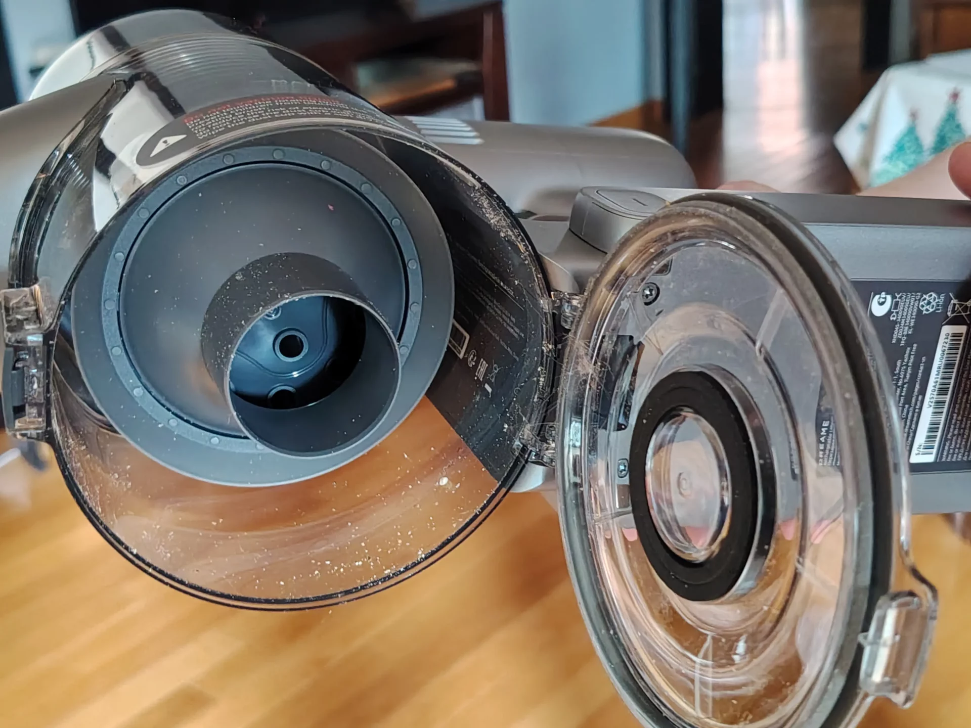 Итак, убираться мне было легко и приятно — высокая мощность всасывания 190 аэроватт и двигатель 120 000 об/мин, оптимизированная система отверстий для забора воздуха не оставляют мусору и пыли ни малейшего шанса.