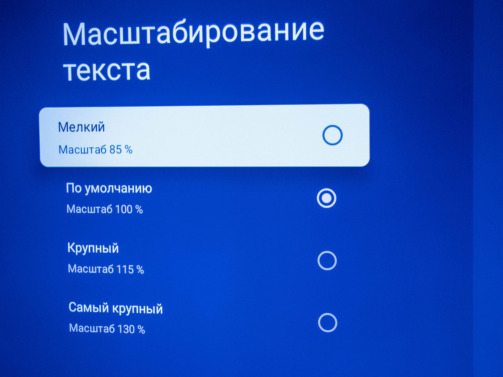 При необходимости текст в меню телевизора можно увеличивать, что очень удобно для пожилых членов семейства и других людей со слабым зрением. Также есть специальный режим слухового аппарата — для слабослышащих пользователей.