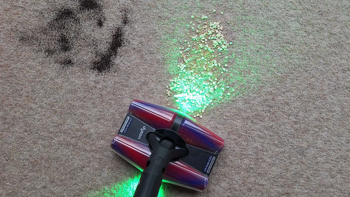 Компания Dyson также добавила зеленый лазер на переднюю и заднюю панели напольных пылесосов Fluffycones. Он предназначен для того, чтобы подсвечивать частицы грязи, которые в противном случае можно было бы не заметить.